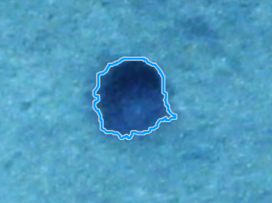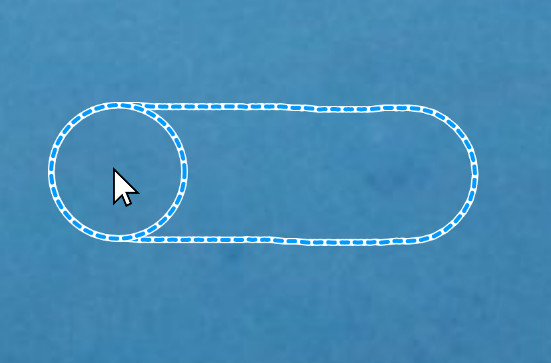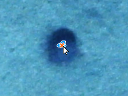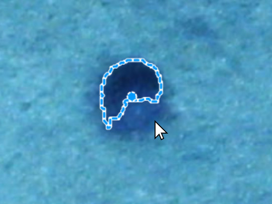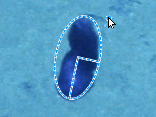 To abort the process, move the cursor back to the point where you initially pressed the mouse button and an "×" symbol will appear. If you release the mouse button here, the detected region will be discarded. If you hold the Shift key while you move the cursor, the "×" symbol will not appear and the region will not be discarded no matter how close the cursor is to the initial point.