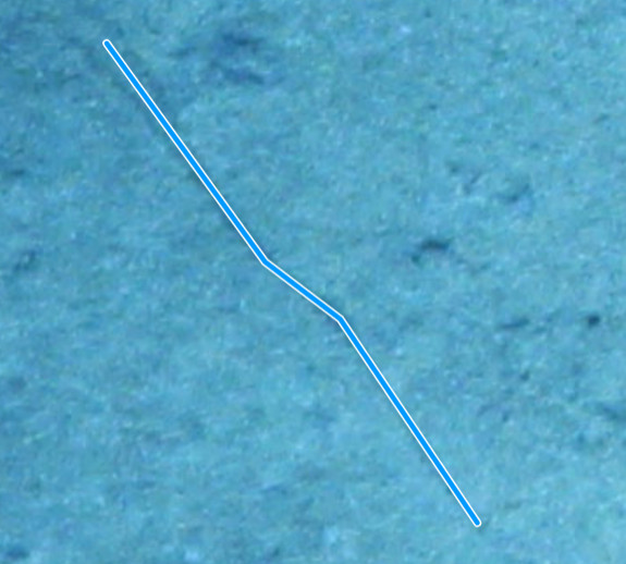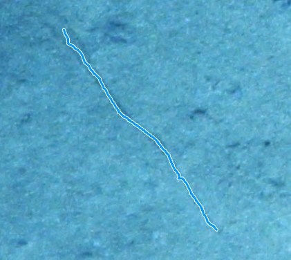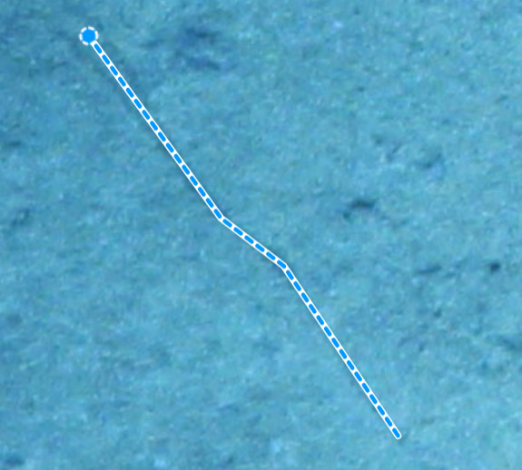 A line string consists of two or more coordinates forming a line. Just like the point, this shape does not cover an area on the image so be careful when you want to use it. This shape is useful if you want to measure lengths. Each click adds a new coordinate to the line string. To finish a line string, click twice on the last coordinate (once to add it to the line string and once to finish the line string).