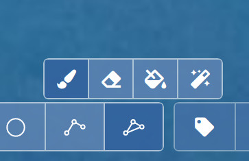The polygon brush tool allows you to "paint" polygons with a circular brush. The button to activate the polygon brush tool appears when you hover your cursor over the button of the polygon tool: