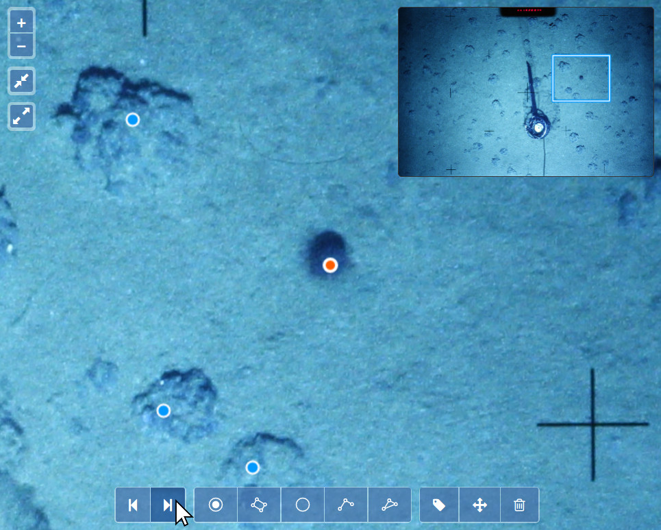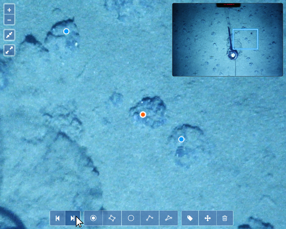 At the top right of the image annotation tool there is the minimap. It does not only highlight your current viewport on the image but you can also use it to move the viewport or quickly jump around. Drag the highlighted viewport in the minimap around to move it or click on a location in the minimap to immediately center your viewport on this point.